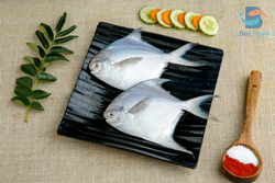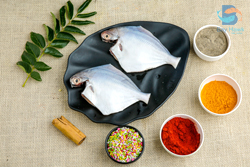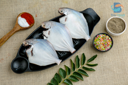 White Pomfret in Tamil is Vellai Vavval. White pomfret fish has low-fat content. The white pomfret is marinated well using a freshly ground konkani masala and is pan roasted on a tawa till it is charred well. You can serve the fried pomfret along with a flavourful fish curry and steamed rice by the side.